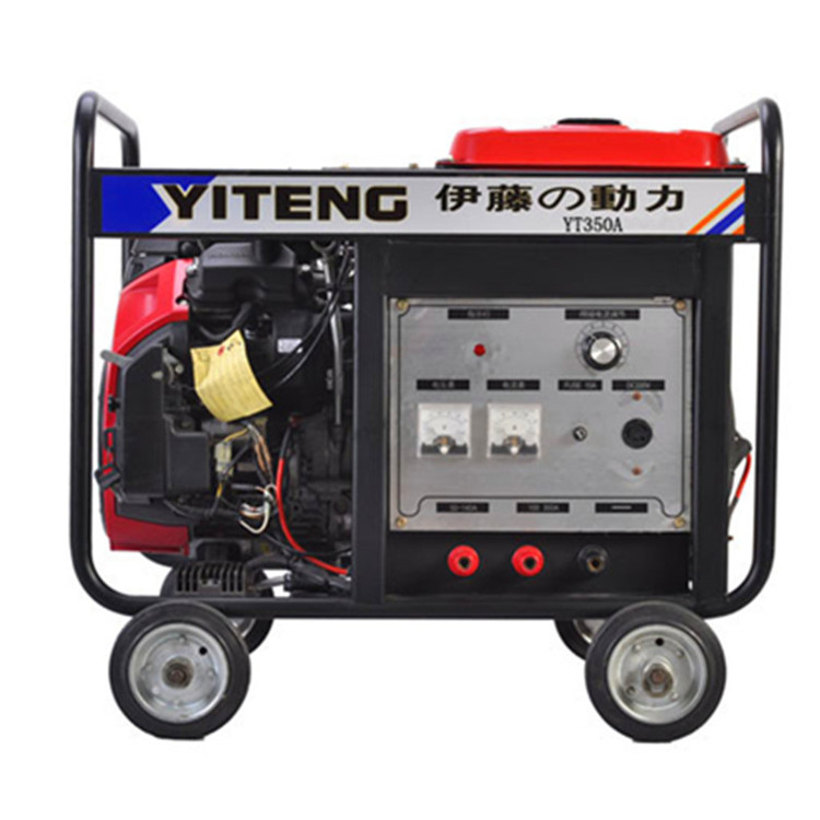 伊藤汽油发电电焊机YT350A电焊机使用电能源,将电能瞬间转换为热能,电很普遍,电焊机适合在干燥的环境下工作,不需要太多要求,因体积小巧,操作简单,使用方便,速度较快,焊接后焊缝结实等优点广泛用于各个领域。伊藤动力汽油和柴油发电机焊机在焊接质量普通焊接没区别而且伊藤动力汽油发电焊机和柴油发电焊机是普通焊机比不了的,伊藤汽油发电焊机和柴油发电焊机都是不需要接电线的,方便一些在野外需要电焊而且接电线的情况下,伊藤动力汽油发电焊机和柴油发电焊机让您在户外工作更方便。